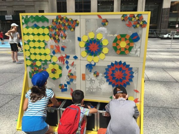 Symmetry is all around us. We see symmetry in our bodies, car wheels, fences, fabric patterns, the MoMath logo, and many other objects! We will learn about different types of symmetry and have fun creating symmetric art using common objects.
