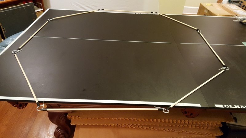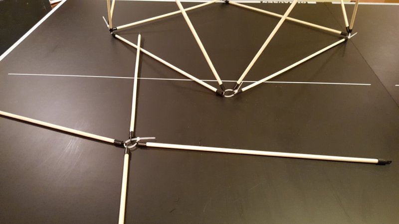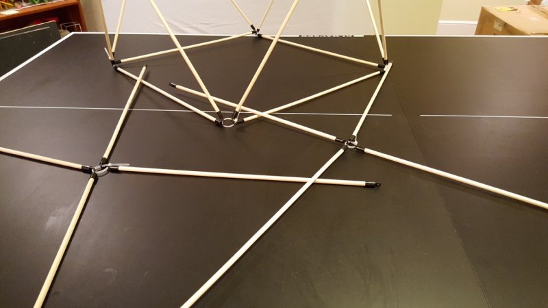 1. Make an octagon of eight ZipStix using eight zipties. Each ZipStik is attached to one other at each end, around in a cycle of eight of them.
