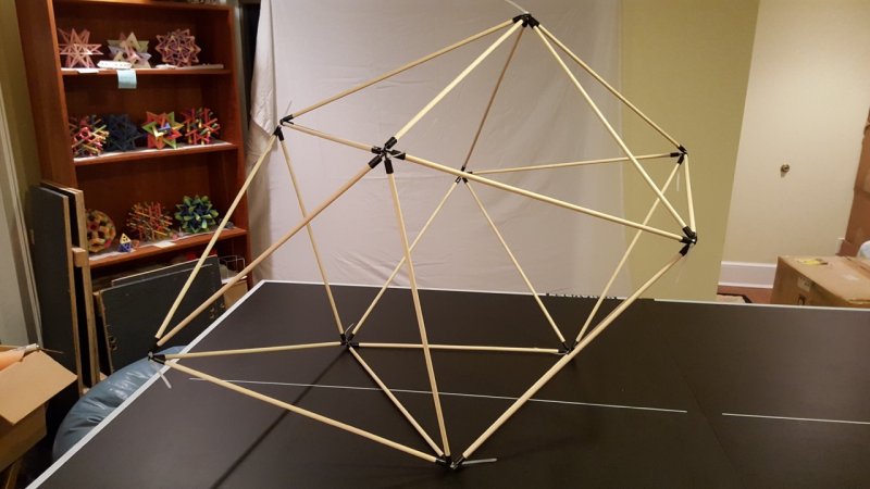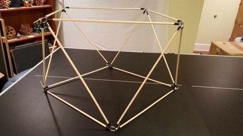 6. Similarly, connect the four loose ends of the assembly from step 4 to the four corners of the other square face of the structure from step 2.