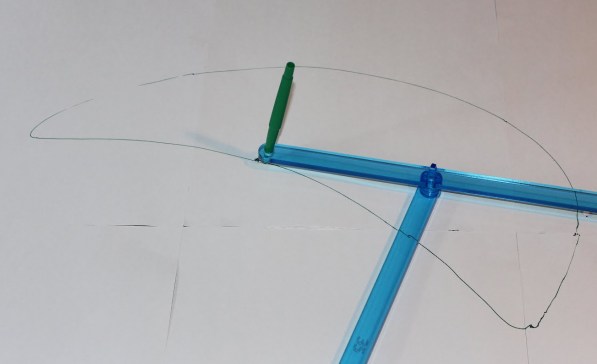 Your linkage should look like this:How to use: Rotate bar B, one full turn. Note that at a few points you will have to “hop” one bar over another, because the linkage sticks protrude above and below the joints. Watch as the pen draws an unfamiliar curve:What is that curve? It’s certainly not a circle, or even an ellipse. Is it an area bounded by two circular arcs? Or an arc of a parabola? No and no. It looks a bit like a whale — maybe it’s the Moby Dick curve? Turns out, it’s a curve implicitly defined by a sixth-degree polynomial in x and y coordinates for the plane (as derived in Hartenberg & Danavit). In fact, a four-bar linkage is presumably the simplest apparatus you could make for drawing sextic curves! Next time, we’ll take a look at what sorts of things one can do with the flexibility afforded by that sixth degree…