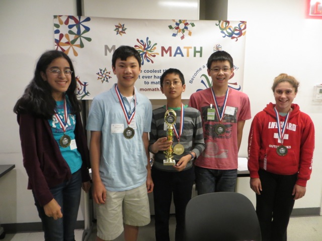 MoMath thanks Con Edison for sponsoring its series of MoMathlon middle school math tournaments and OppenheimerFunds for sponsoring the Tournament of Champions celebration. The Tournament of Champions took place at MoMath on Monday, May 4.
